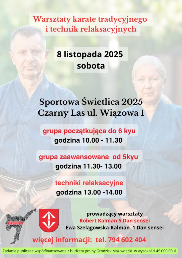 Serdecznie zapraszamy do udziału w otwartych treningach i warsztatach technik relaksacyjnych, które odbędą się 8 listopada 2025 roku w Świetlicy w Czarnym Lesie.